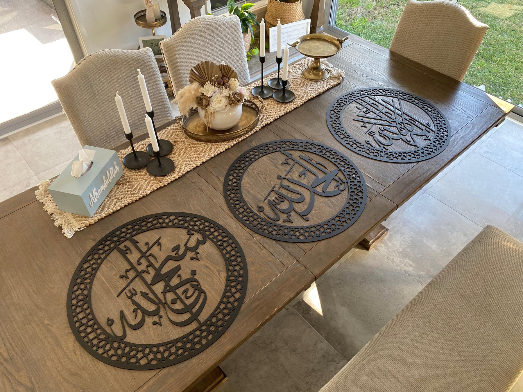 This three set trio of Islamic inspired wall Art hoop design is stunning!!!