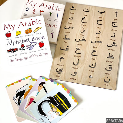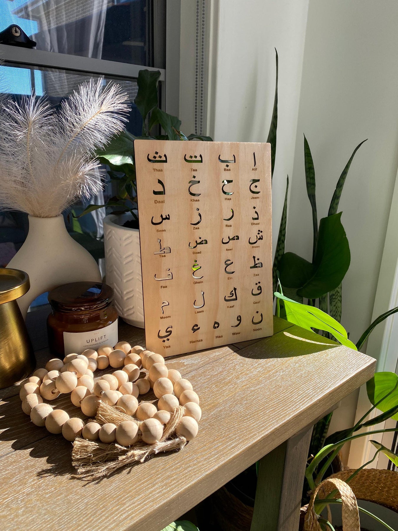 Regular price $35.00These beautiful A4 Arabic alphabet learning blocks are great to teach your kids the Arabic alphabet. We have laser cut out the letters and engraved the sounds of the letters on 3 mm thick plywood. Just another addition to our kids learning range.