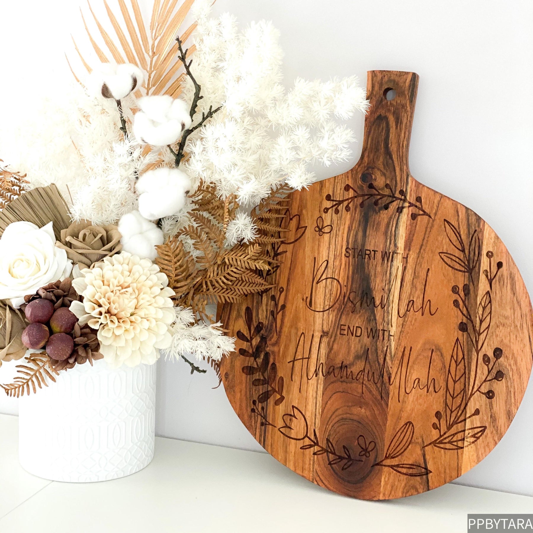 Different shapes available for the chopping boards and serving platters. Pictured is our round chopping board.