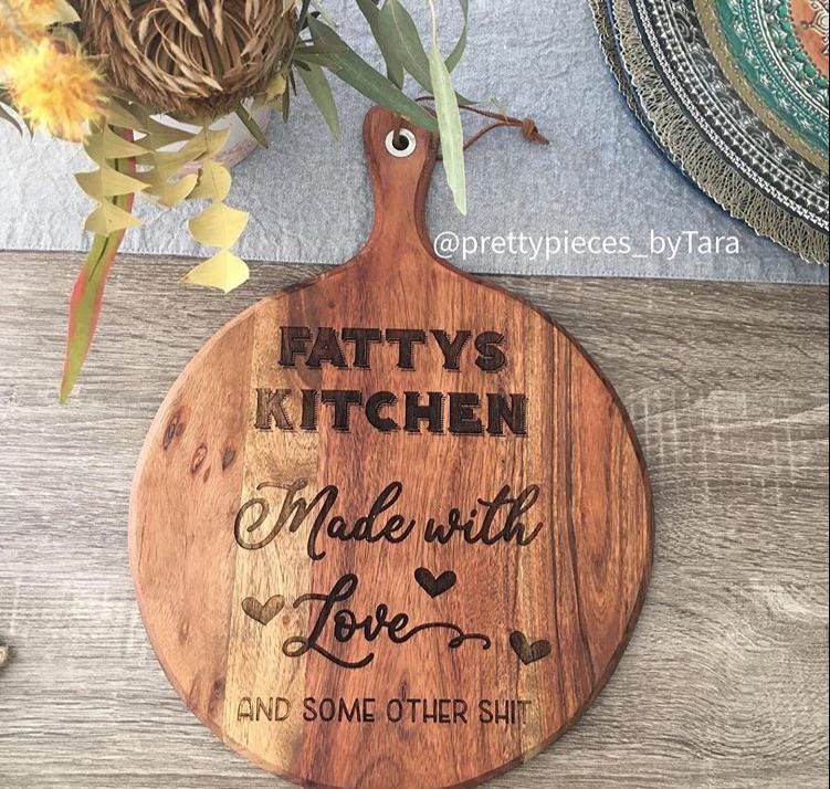 Customised chopping boards. These are a great addition to any kitchen and make the perfect gift.
