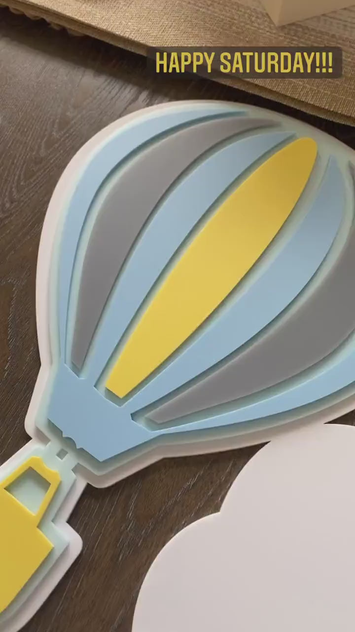 We have a design with a gorgeous hot air balloon and clouds and a rainbow with clouds aswell.