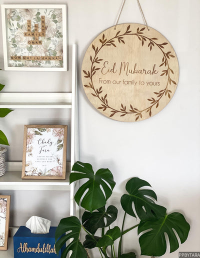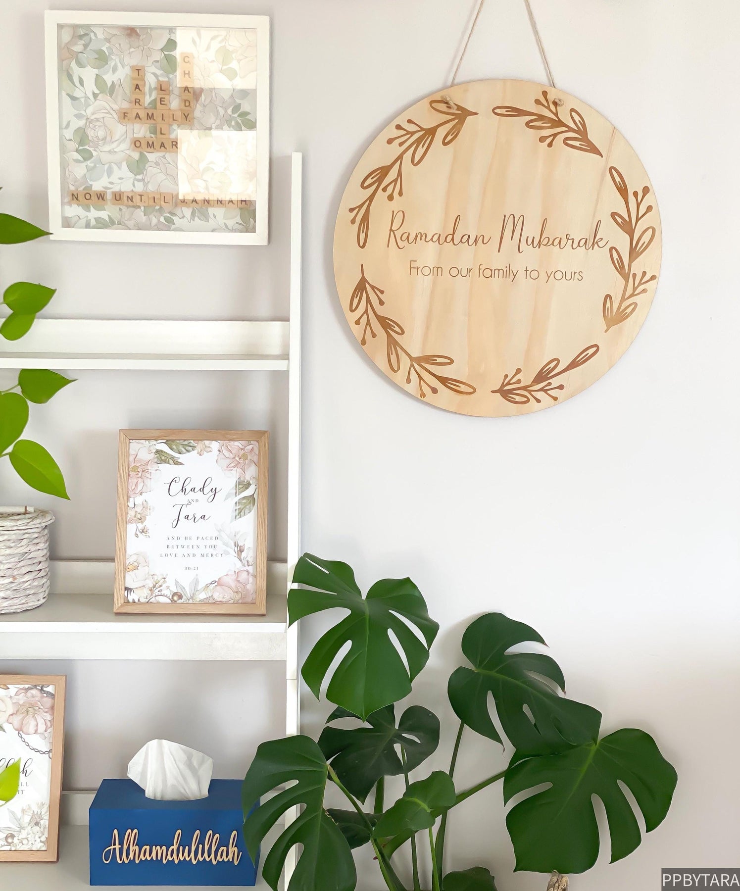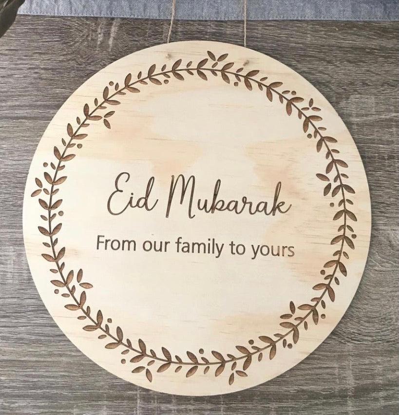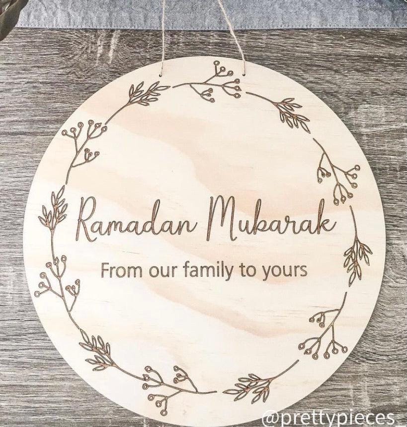 Double sided floral reef designs Ramadan Mubarak and Eid Mubarak plaques.