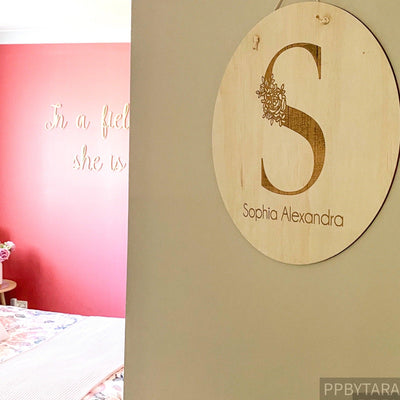 The first letter of their name with the floral design or plain, the options are honestly endless and they are so stunning they will dress up any kids room door.