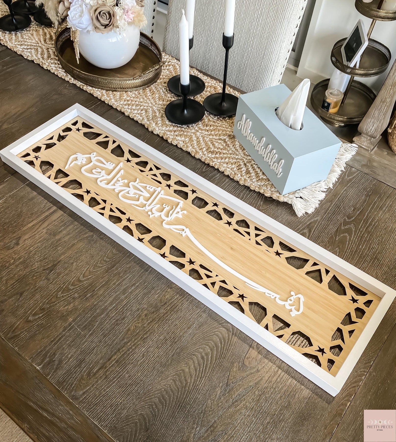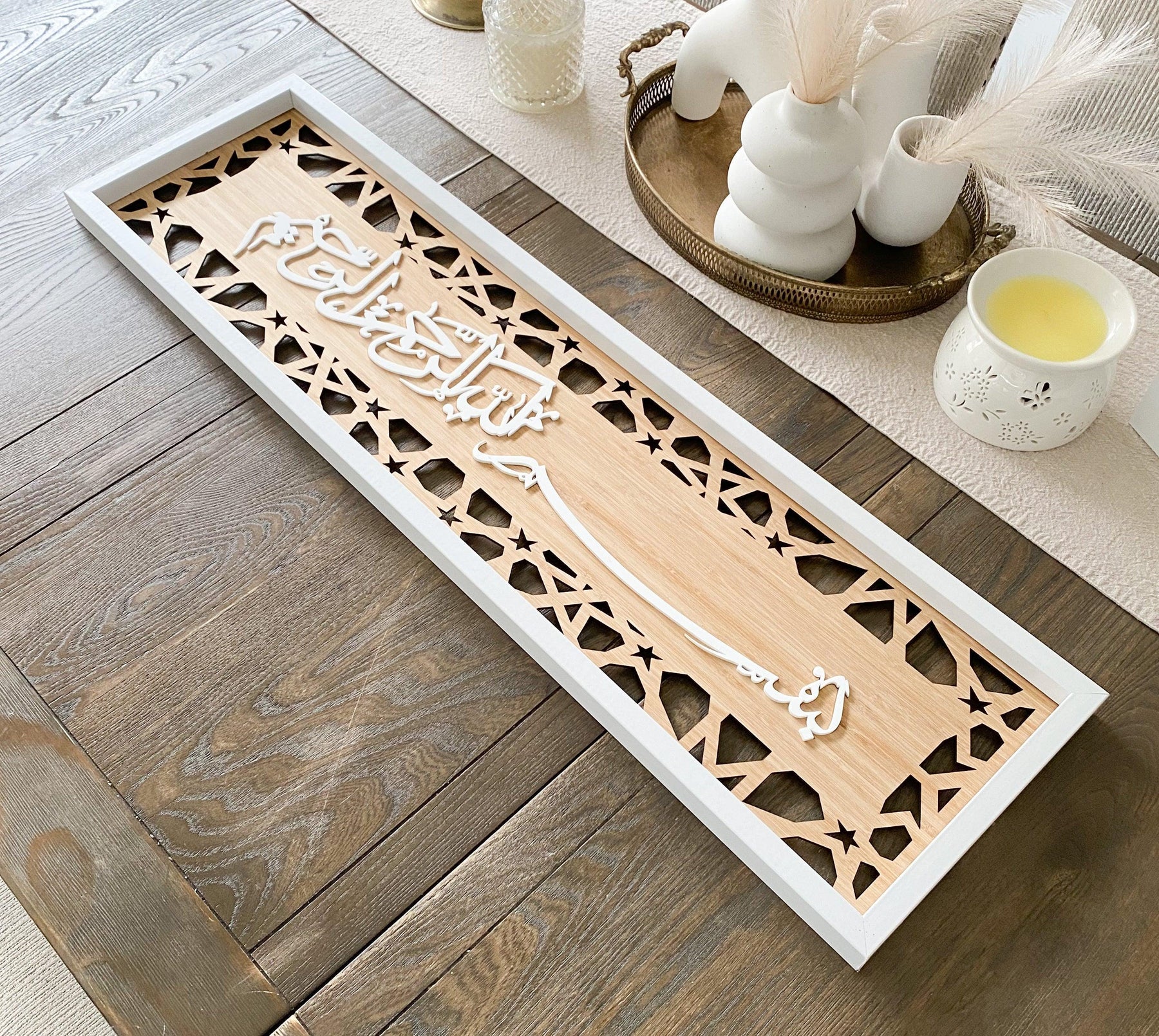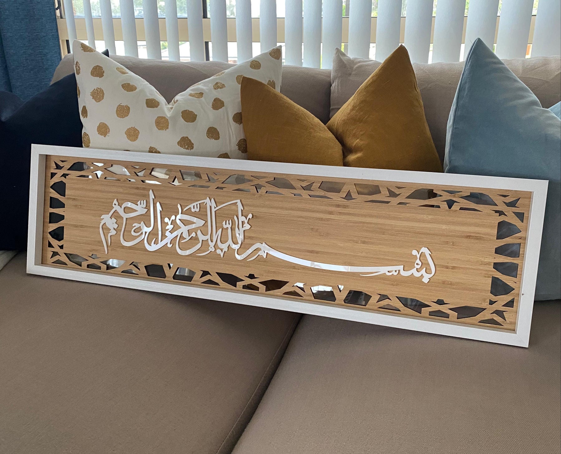 The calligraphy is available in 3 mm thick colour acrylic white or black or 3 mm thick plywood.