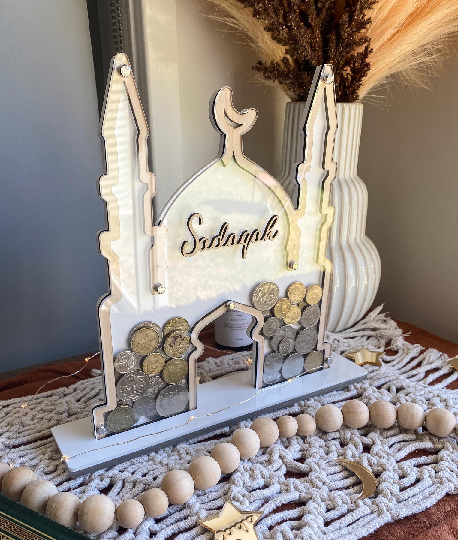 This Beautiful wooden & Acrylic SADAQAH jar can keep kids visually motivated to contribute towards charity.
