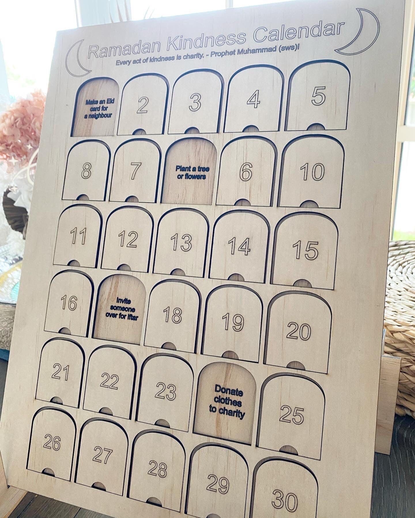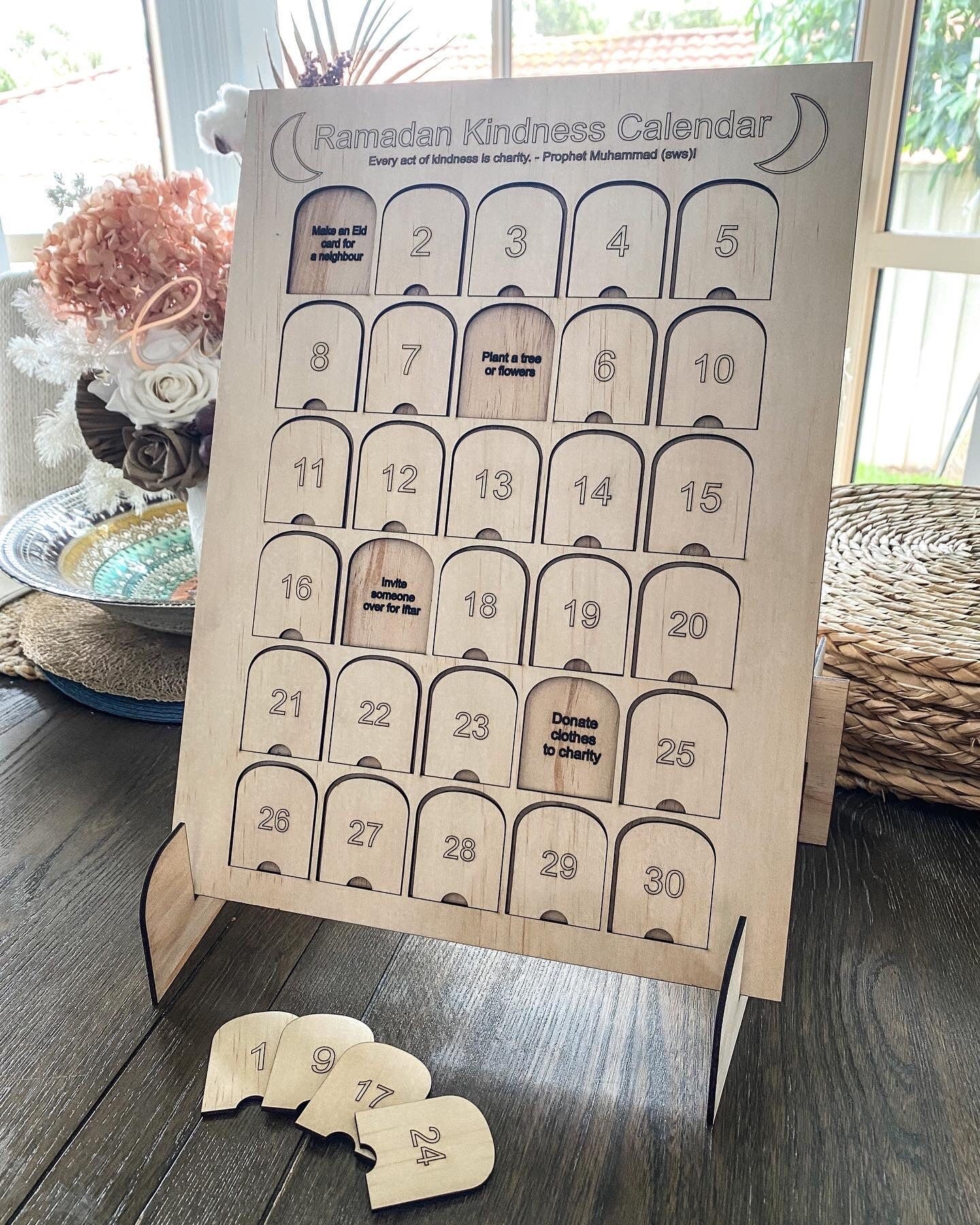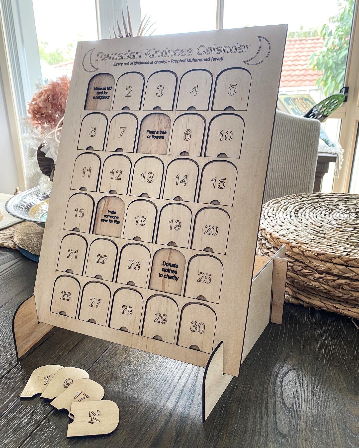 Complete your Ramadan Décor with this gorgeous wooden Ramadan kindness calendar.