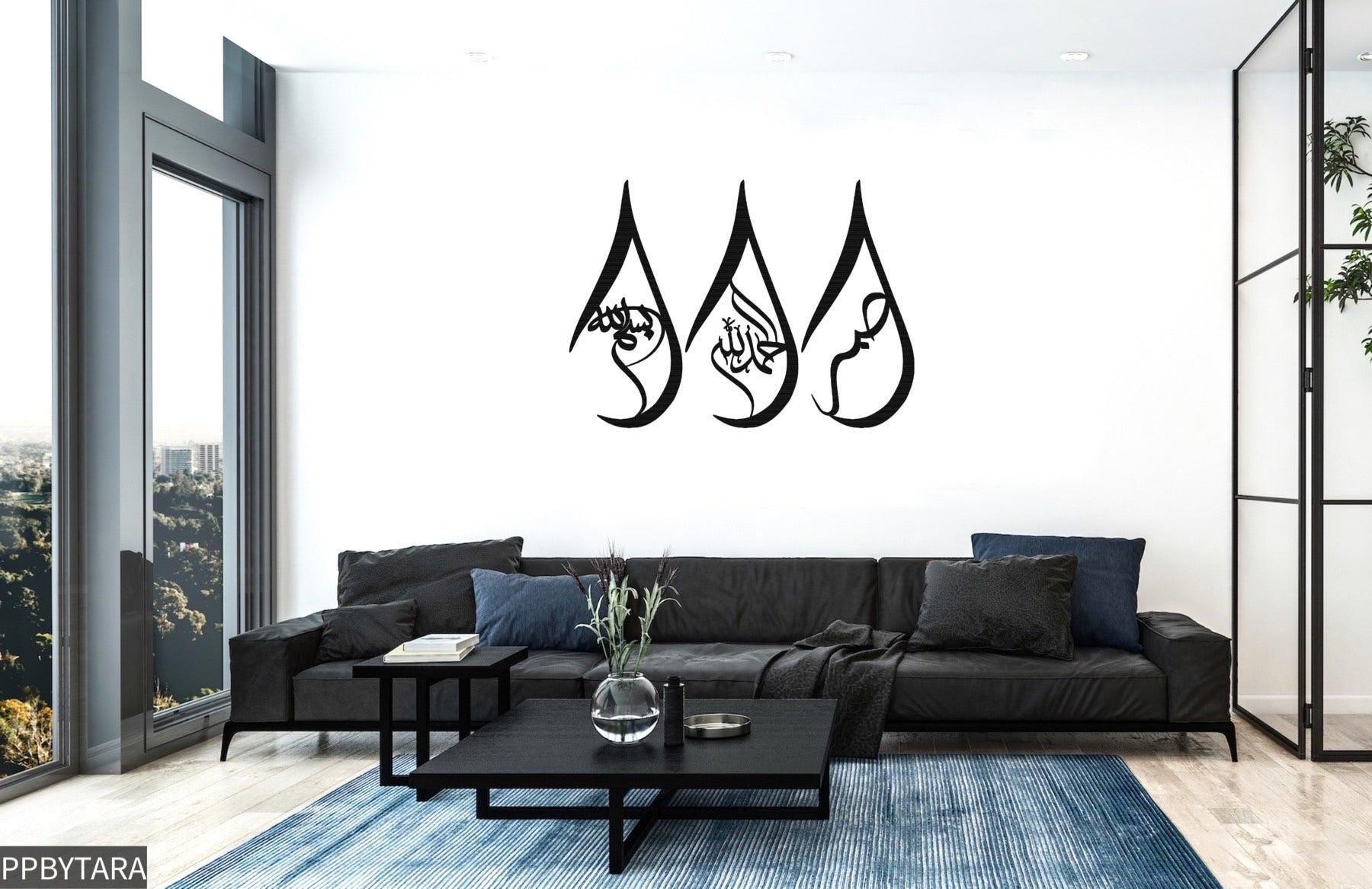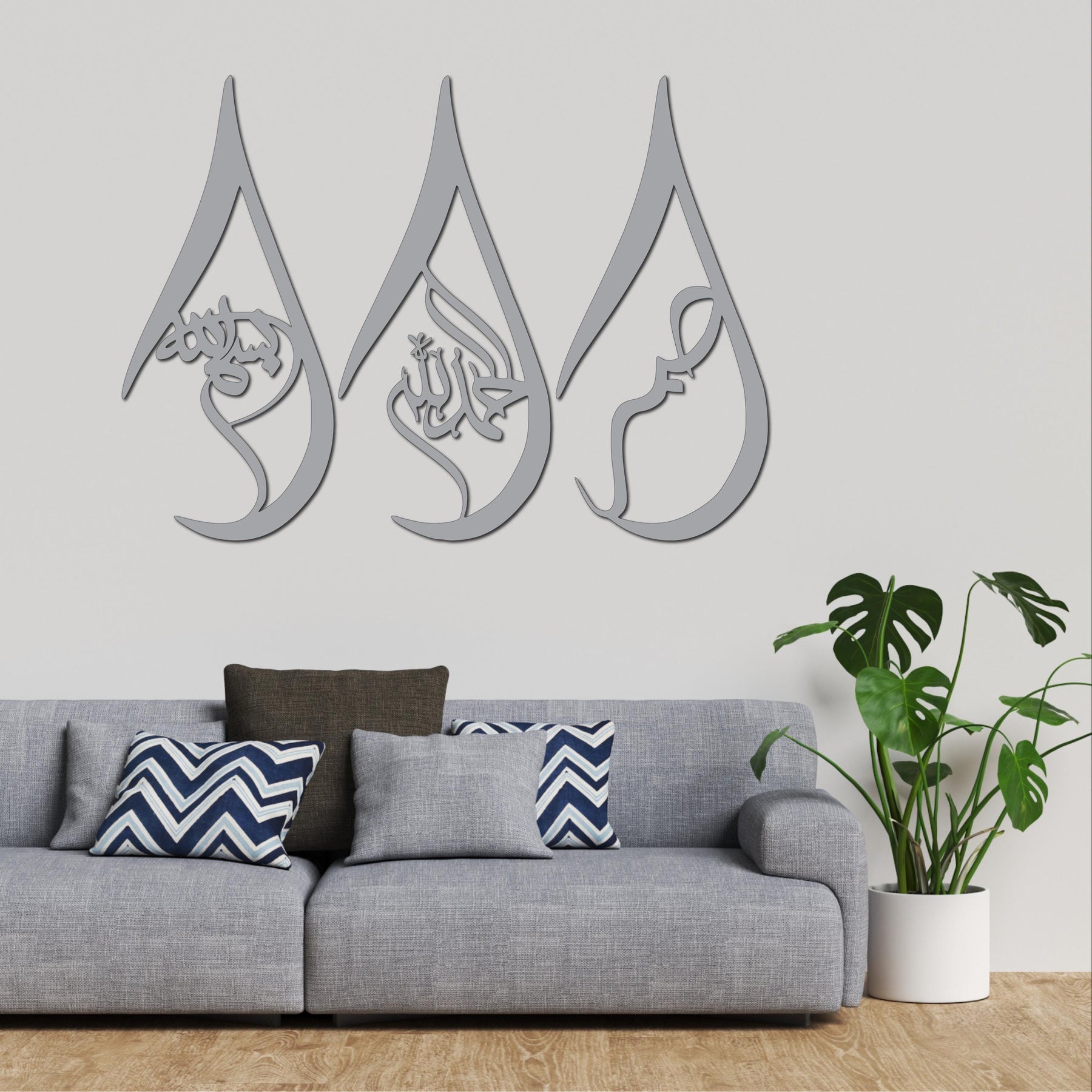 Regular price $70.00Tear drop Arabic calligraphy - sold as a set of 3. Sabr (patience) Bismillah (in the Name of Allah) and Alhamdulillah (praise be to Allah) tear drop set.