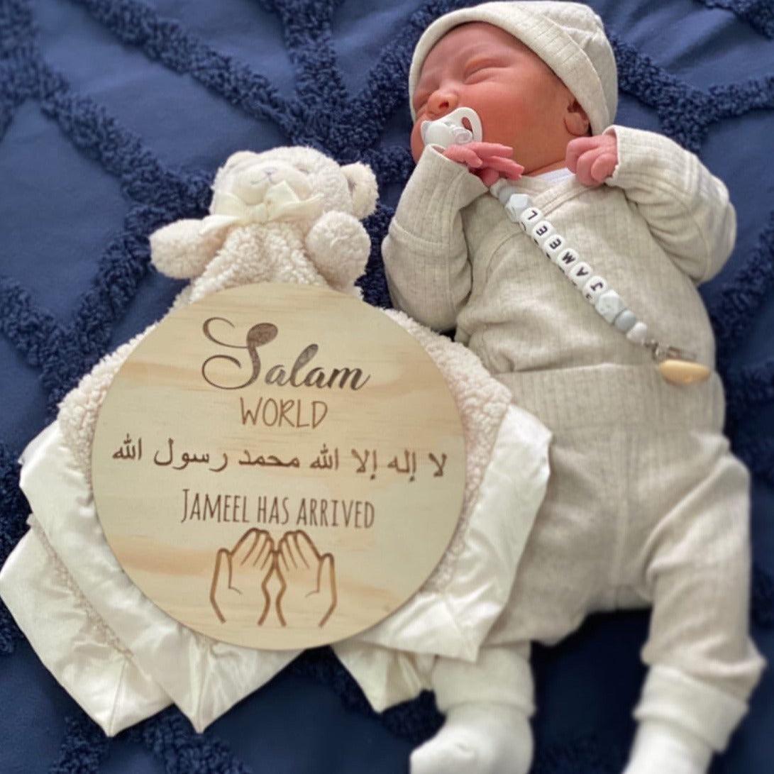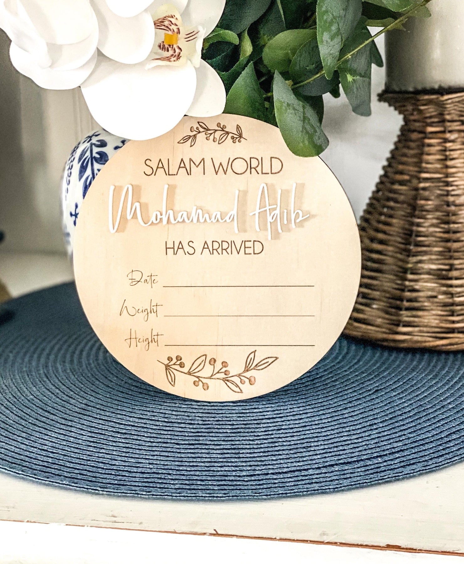Other option is the Salam / hello world with name, height, weight, date and time. These are available in 3mm plywood aswell engraved.